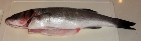 Ask your fish monger to cut the fillets from the fish, or do it yourself (I’ll explain how another time).