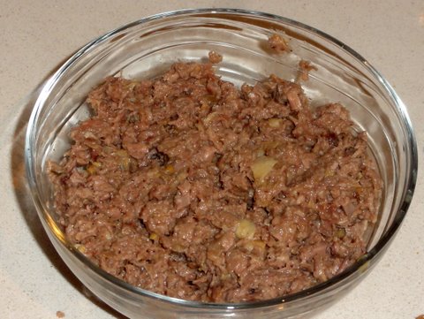 When the leg was cooked, I added the juices from the vacuum bag to the stock in the pan (would be a waste to throw away!), took the meat from the legs and shredded the meat in the food processor with an egg, some freshly grated parmigiano reggiano, some freshly grated nutmeg, salt, freshly ground black pepper and a few table spoons of the concentrated stock. I then put the filling in a bowl, covered it with plastic wrap and let it firm for a bit in the fridge. I made pasta dough and ravioli according to these instructions using 1 egg and 100 grams of flour for a filling made of the 2 legs of 1 pheasant.