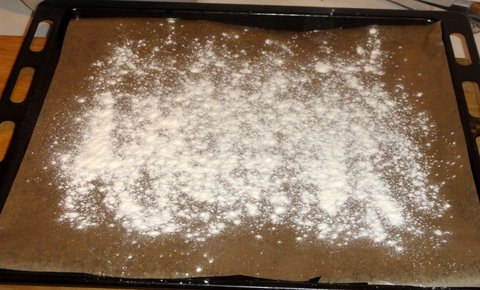 Cover a baking sheet with parchment paper and sprinkle it liberally with flour to prevent sticking.