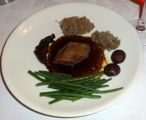 This dish goes well with a complex red wine that is not too powerful. For our X-mas dinner we liked the pairing with this 1990 Barbaresco.