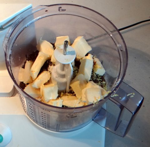 Sieve the flour, baking powder and caster sugar in the bowl of the food processor. Add grated lemon zest, a pinch of salt and the butter in chunks.