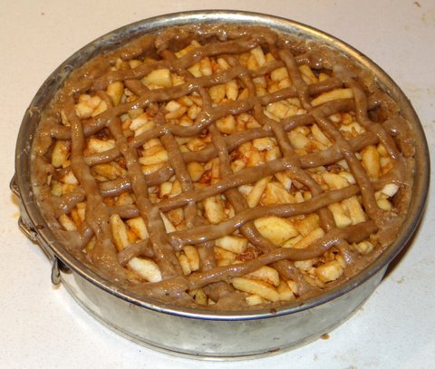 Cover with a lattice made from the remaining dough. Brush with the remaining 1/4 egg.