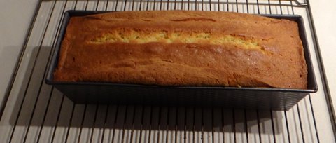 In the same baking spree as the apple pie I also made a pound cake. The name “pound cake” comes from the amounts of an old recipe for this type of cake: 1 pound of flour, 1 pound of butter, 1 pound of sugar and 1 pound of eggs. For the same reason, this cake is called “quatre quarts” (four quarters) in French. If you use the traditional recipe the cake will be a bit dry and a bit bland. To make it more interesting, I’ve added a pinch of salt and the grated zest of a lemon and used vanilla-scented sugar. To make it more moist, I’ve replaced half the eggs with egg yolks and used a slightly lower oven temperature.