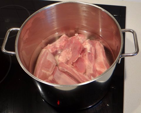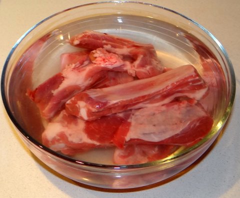 Soak the pork meat (not the sausage!) in cold water to remove any blood.