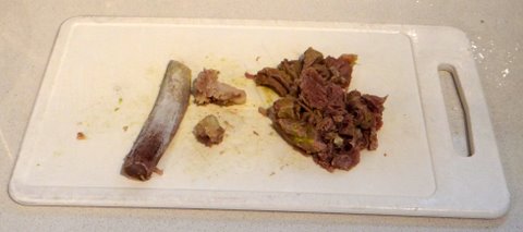 Remove the bones, cartilage, pork rind and any other (fatty) parts that you don’t like to eat. Cut the meat into small pieces and put back into the pot.
