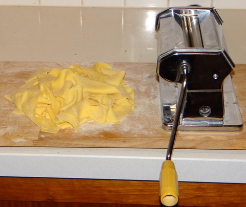 You could also make this pasta with store-bought pappardelle, but it’s better with home-made because of the more interesting texture.