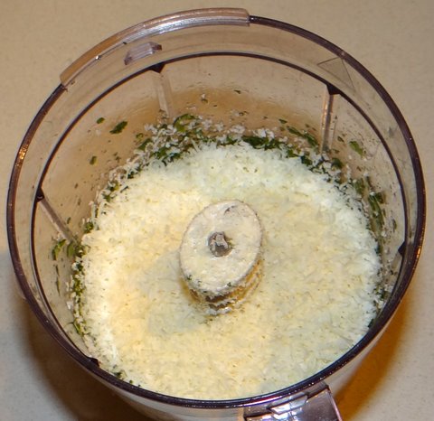 Blend in the cheeses. Now taste and see if you’d like to add some more of any of the ingredients to your liking. For example if you’d like your pesto to be thinner, add some extra virgin olive oil.