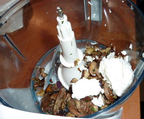 • In a food processor mix remaining mushrooms with 120 grams (4 oz) ricotta, 4 tbsp freshly grated parmigiano reggiano.