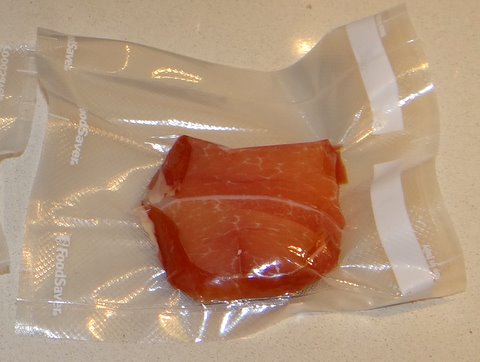 Simple but delicious: monkfish wrapped in prosciutto di parma. Slightly crispy prosciutto on the outside, tender juicy fish on the inside. If you don’t have a sous-vide water bath, you can get a similar result (still great but not as juicy) with an oven and an instant-read meat thermometer.