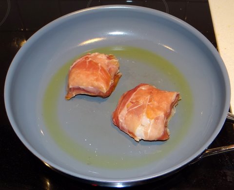 Heat some olive oil in a non-stick frying pan over high heat. Sear the bundles quickly on all sides. Serve on pre-heated plates.