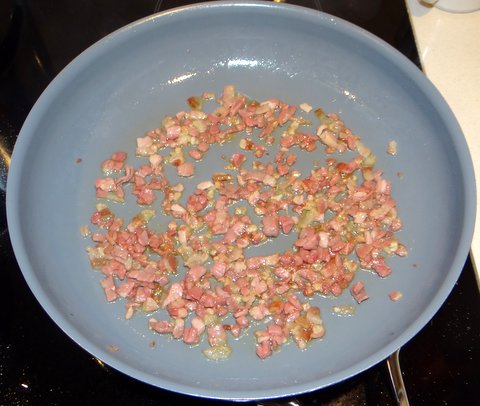 Chop the pancetta or guanciale.