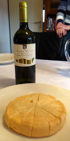We had the same Munster cheese as last time and also with a gewurztraminer from Alto Adige (Italy), but from a different producer: Elena Walch. The match was just as outstanding as last time, and this gewurztraminer Kastelaz 2009 is just perfect with a great balance and complexity. Very fresh for a gewurztraminer of this depth.