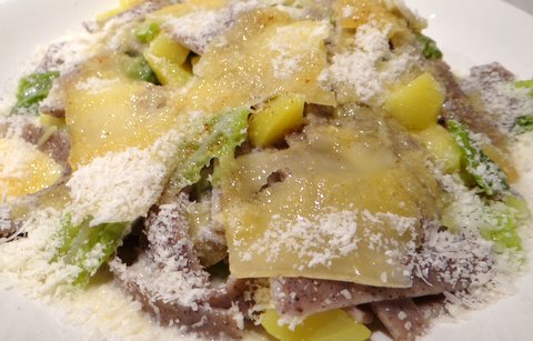 Add the pizzoccheri and cook for another 12 minutes (or as indicated on the package).