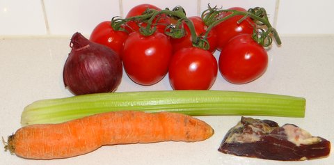 Make pasta dough from the eggs and the semolina flour. While the pasta dough is resting, chop the prosciutto, the carrot, the onion and the celery. You can chop them fine or a bit chunckier according to your own taste.