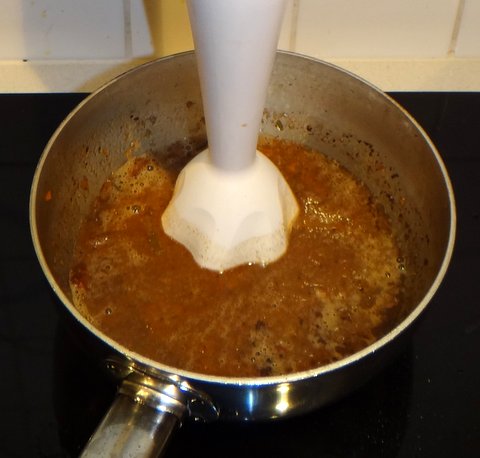 Puree the sauce. If necessary (especially when cooking sous-vide), simmer the sauce over medium heat to thicken it. Taste and adjust the seasoning.
