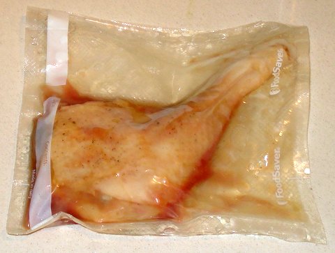 Some weeks ago I wrote about my attempts to recreate the memory of my grandmother’s braised chicken. I came pretty close by cooking a stewing hen sous-vide at 64C/147F for 3 days, but I was not completely satisfied with the result yet. In the meantime I have done two new experiments with chicken from the same source, once at 62C/144F and once at 60C/140F. Just a short post today to give you an update of the results.