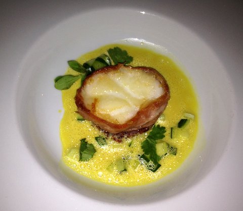 Lastage opened up less than two years ago at a stone’s throw from Amsterdam Central station. I tried it last year and was impressed with the quality of the food, wine, and service, especially considering the very affordable prices. Meanwhile they have been awarded a Michelin star, but the prices are still the same. You can choose 3 to 6 courses with 2 choices per course for 38 to 62 euros (US$ 48 to 78 at today’s exchange rate), with matching wines for 7.50 euros ($9.50) per glass. Given this price level this is a very good place for a casual dinner like I had last night with one of my best friends. The pictures were taken with my iPhone.