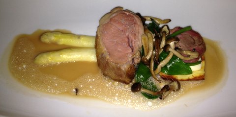 Lamb saddle and lamb neck confit with white asparagus, chevre charolais, mushrooms and sea lavender
