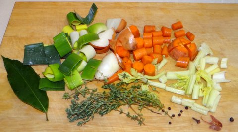 mixed aromatic vegetables such as leeks, onions, carrots and celery