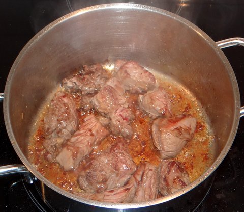 Brown the beef in two batches in butter and olive oil in a casserole for which you have a lid.