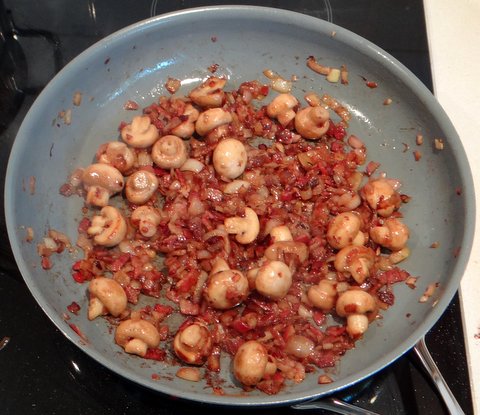Add the mushrooms as well. Next time, I will sauté the mushrooms separately and add them at the very end so they will stand out more.