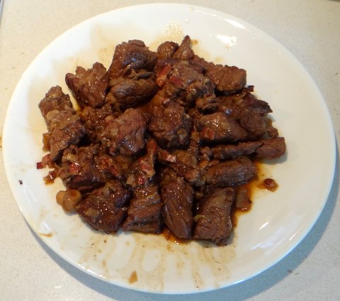 600 grams (1 1/3 pounds) stewing beef, cut into cubes