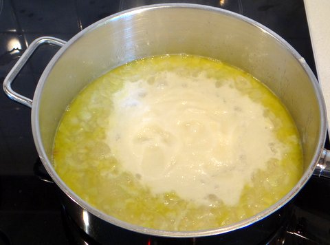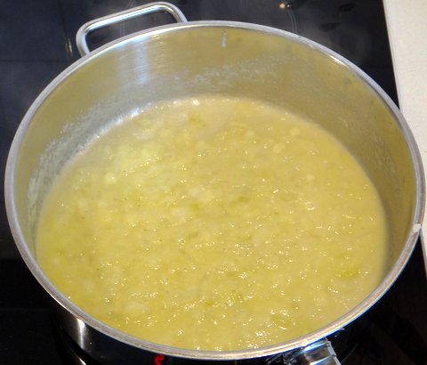 …and add this puree to the onions and wine.