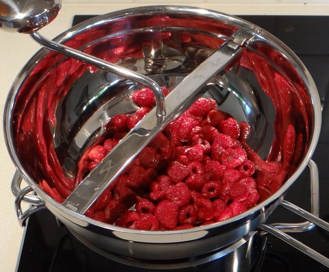Puree 250 grams (1 cup) of the raspberries with a foodmill.