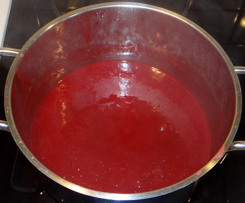 It is ready when it is starting to thicken. It burns easily, so make sure to keep the heat moderate.