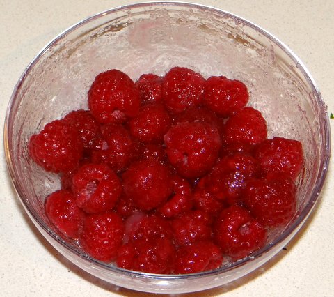 375 grams (1 1/2 cups) raspberries, fresh or frozen (defrosted 24 hours in the refrigerator)