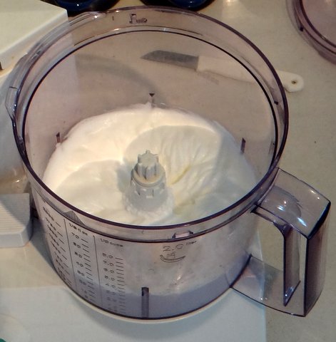 Whip the egg whites in a clean bowl with clean beaters to stiff but still glossy peaks (still fluid enough to blend easily with the base).