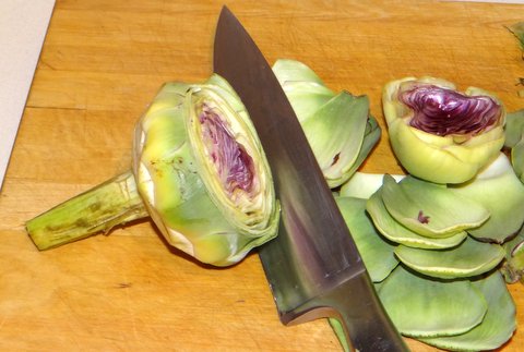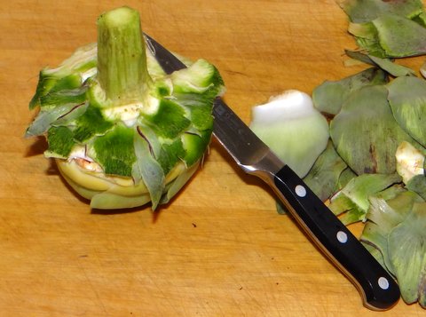 This cleaning method is for large tough artichokes. For small tender ones, you can eat more of them.
