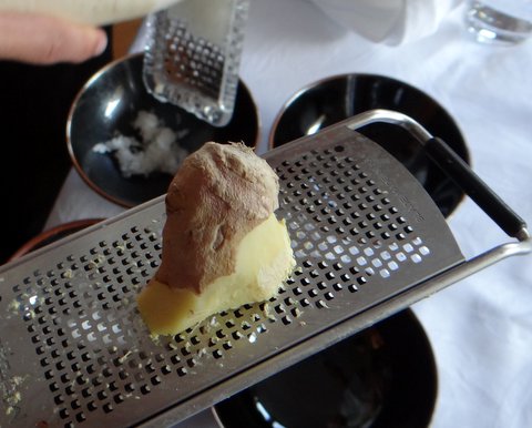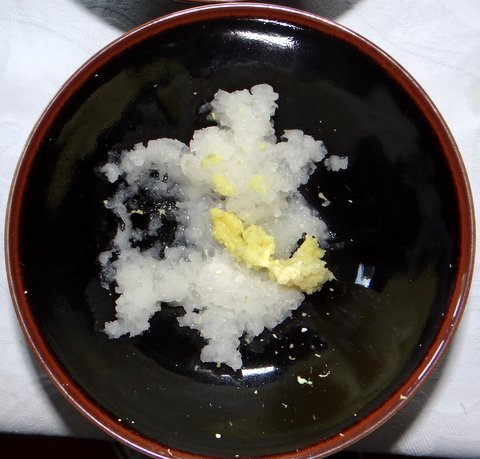 Put grated daikon and ginger in each bowl.