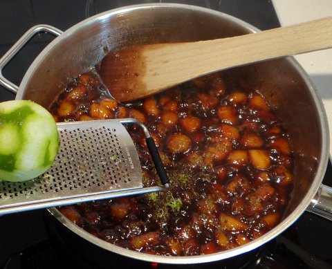 Add grated orange zest (I didn’t have an orange and used a lime, but orange is better), cumin and cloves, and stir to mix.