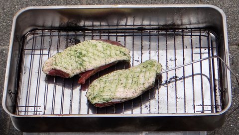 The combination of duck and fruit is well known, with canard à l’orange as the most famous rendition. I got the idea to combine duck with a spiced plum chutney from Jamie Oliver and have been making this for years, ever since I’ve had a stove top smoker (that I use with separate burners since I have an induction hob and since it’s easier to use outside anyway). I love hot smoking since it’s so easy, very tasty, and always gives a lot of oohs and aahs when I serve something straight from the smoker to my friends. Some slices of smoked duck breast with a bit of chutney make for a wonderful appetizer.