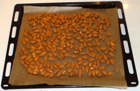 Preheat the oven to 190C/375F. Line a baking sheet with parchment paper and spread out the almonds in a single layer. Toast for 4 minutes and let cool.