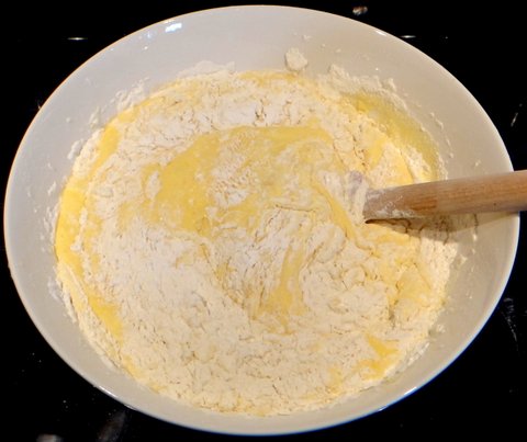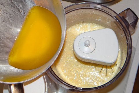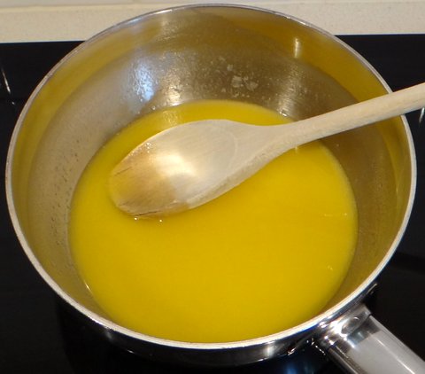 Add the melted butter (which should be less than 50C/120F to prevent cooking the eggs) and mix to incorporate.