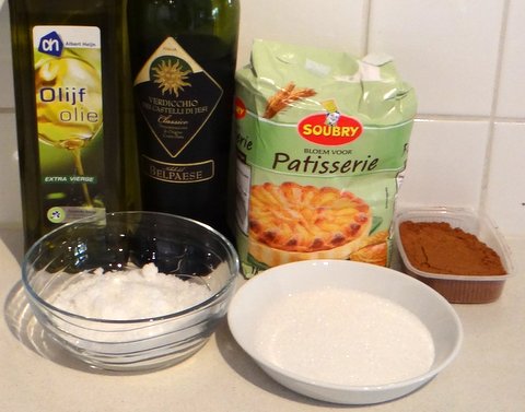 When he tasted my cantuccini, my co-worker Mauro said that he usually prefers ciambelline al vino, the typical cookies from his home-town Rome. I had never heard of those, but decided to make them and liked them. You can make them with either white wine or red wine. Although I have not tested this theory myself, I believe these cookies are very suitable to bake with children. Easy dough and an interesting shape. The alcohol will of course evaporate when they are baked.