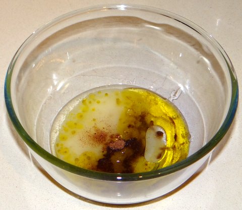 Put the oil, wine, sugar, salt, and aniseed in a bowl.
