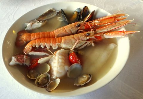 Cut the fish fillets in large pieces (you’d want at least 4 pieces of each type of fish). Add the scampi, shells, and fish fillets to the soup.