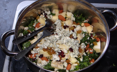 Kale Salad with Apples, Trail Mix, and Blue Cheese