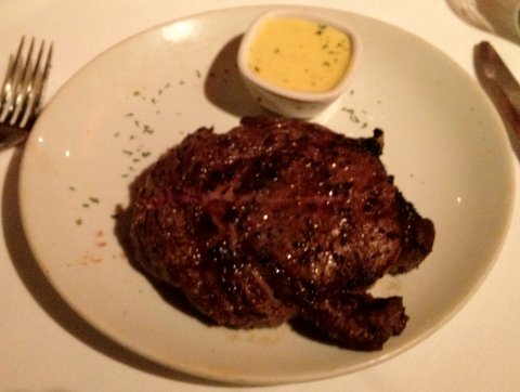 We asked about the size of the steaks and decided to share a rib-eye steak after hearing it was 16 oz (1 pound or 454 grams) since even 8 oz is more beef than we usually eat. We slightly regretted this after tasting the steak because it was so good.