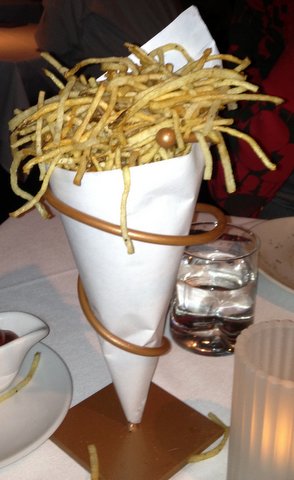 The salad at Fleming’s was fresh and the ‘shoestring’ fries, served in a paper bag, were good.