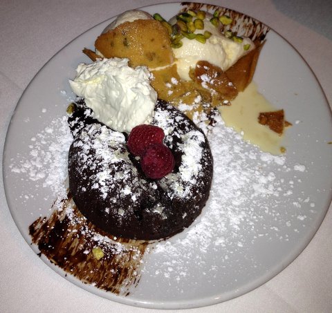The chocolate lava cake was good and very chocolaty (although they seemed to have pulled it out of the oven a bit late because the center was firm rather than molten, but we didn’t mind) and the vanilla icecream was OK (I like it better with more cream and real vanilla bean). They had an usually large selection of dessert wines available, but unfortunately no PX. So I had a glass of 10-year old tawny port that paired well with the chocolate cake.