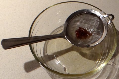 Start making the vinaigrette by filtring the bacon fat into a small bowl. This should yield about 1 Tbsp of bacon fat.