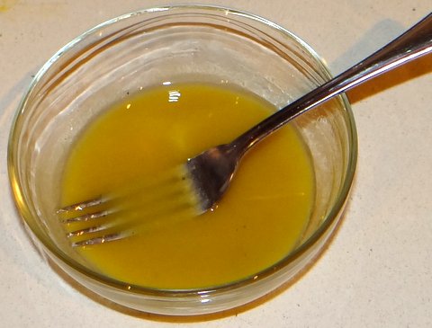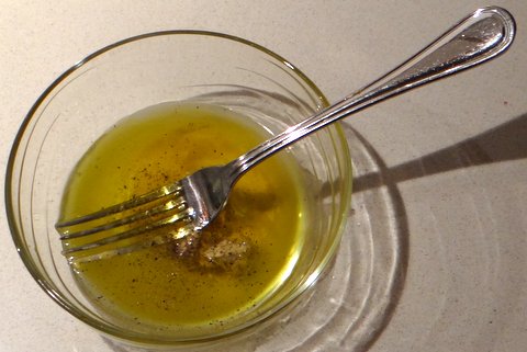 Beat with a fork to emulsify, thus obtaining your vinaigrette. (You can also put the ingredients in a cleaned jam jar. Close the jar by screwing on the lid, and shake well to emulsify.)