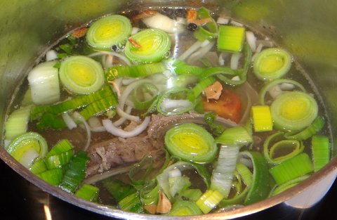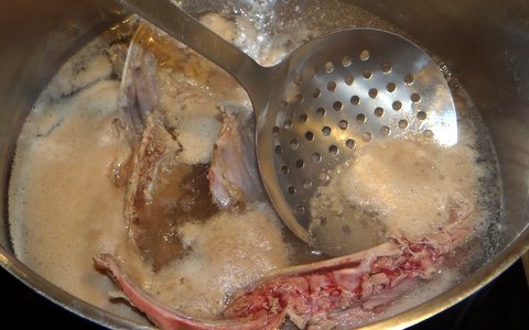 I brought it to a boil and removed the scum that rose to the surface with a slotted spoon.