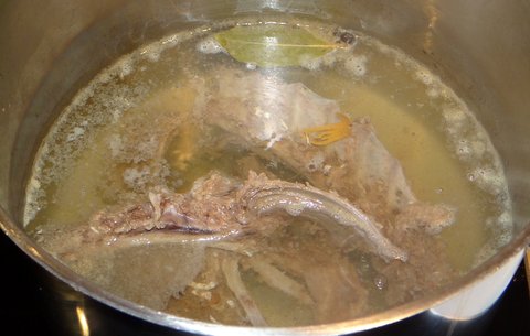 I added the vegetables to the stock and let it simmer for another hour. Then I sieved the stock with a fine sieve. I didn’t pay much attention to keeping the stock clear, as I was going to use it to make sauces anyway.