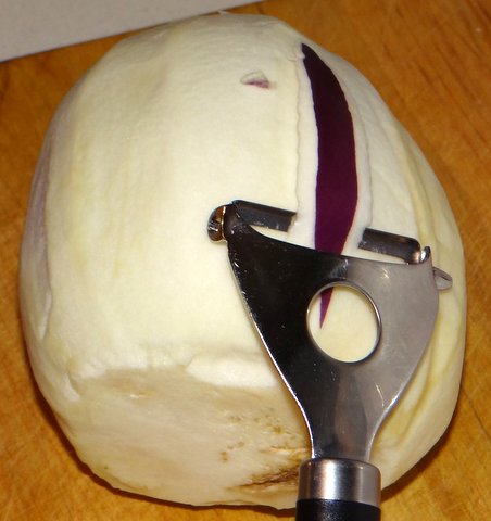 The skin looks pretty but it doesn’t taste any better than regular eggplant, so it had to go.