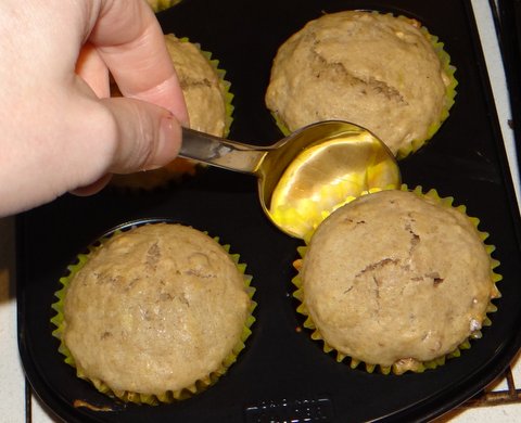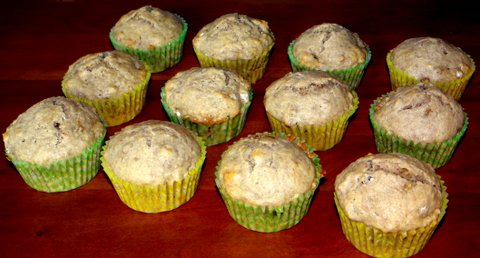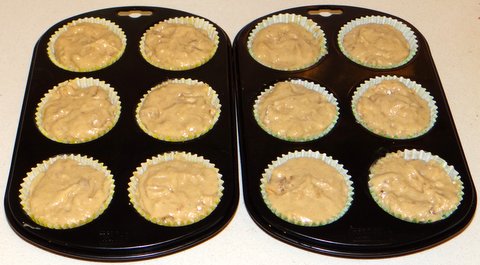 The second dozen of muffins I baked to celebrate my birthday at work was banana nut. I found this recipe on JoyofBaking.com and it turned out great. The only thing I’ll change next time is to increase the amount of walnuts and put some on top for more crunch. The amounts in grams mentioned in the recipe did not match the amount in cups. Since it is an American recipe I used the amounts as prescribed in cups and provide the correct conversion into grams below (as per my digital scales).